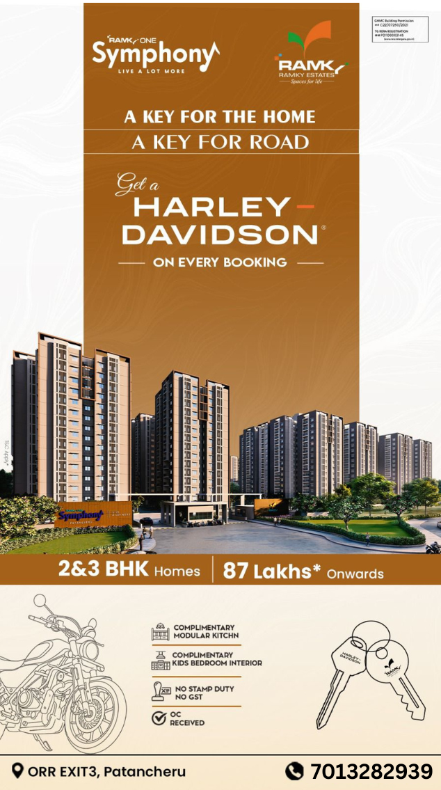Book your flat at Ramky and get a Harley Davidson bike Click Here